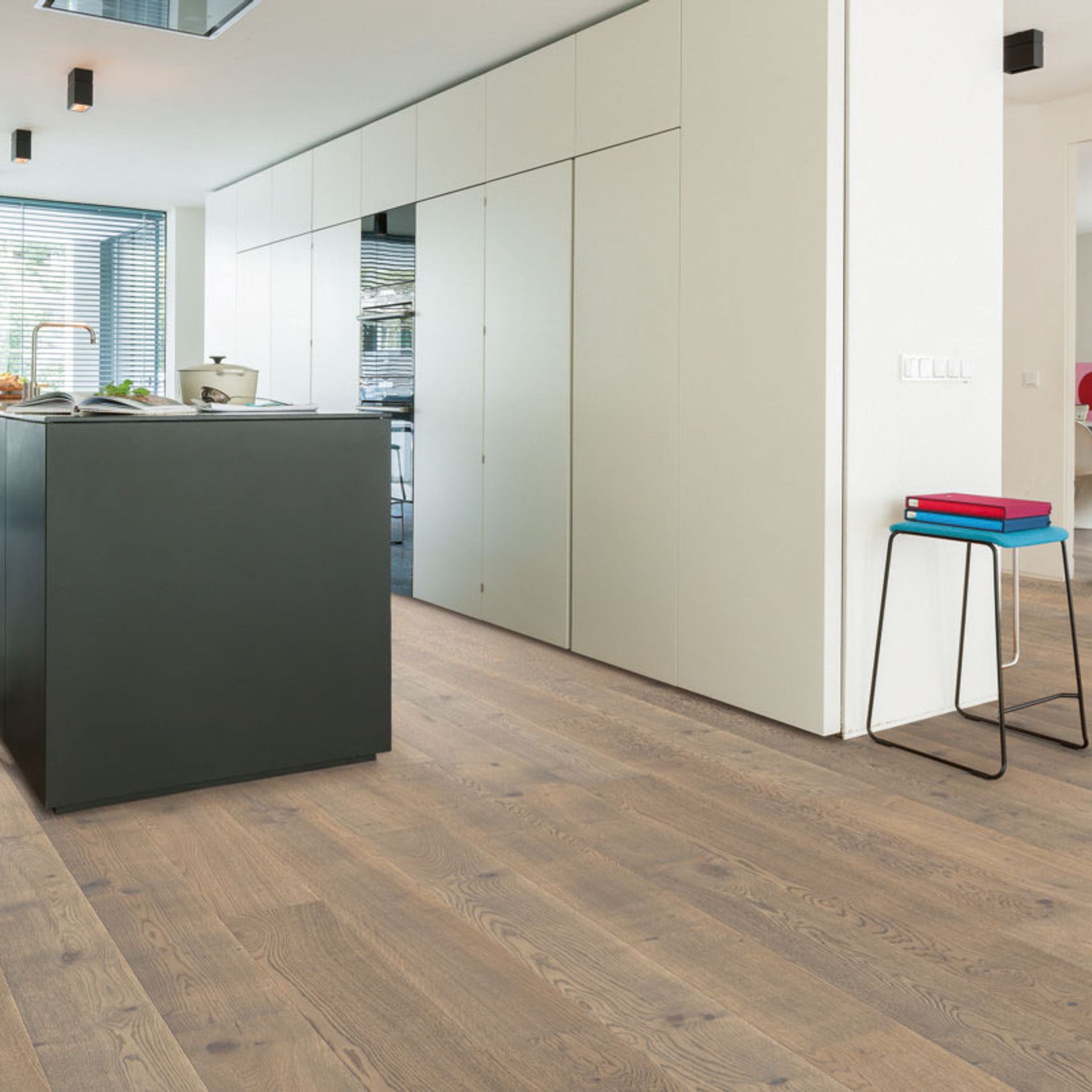 Was die Versiegelung der Oberflächen angeht, gibt es zwar nach wie vor viele lackierte Böden, die Tendenz geht jedoch eindeutig zu den mehrfach geölten Produkten – von hell bis fast schwarz in allen nur erdenklichen Farbspielen.