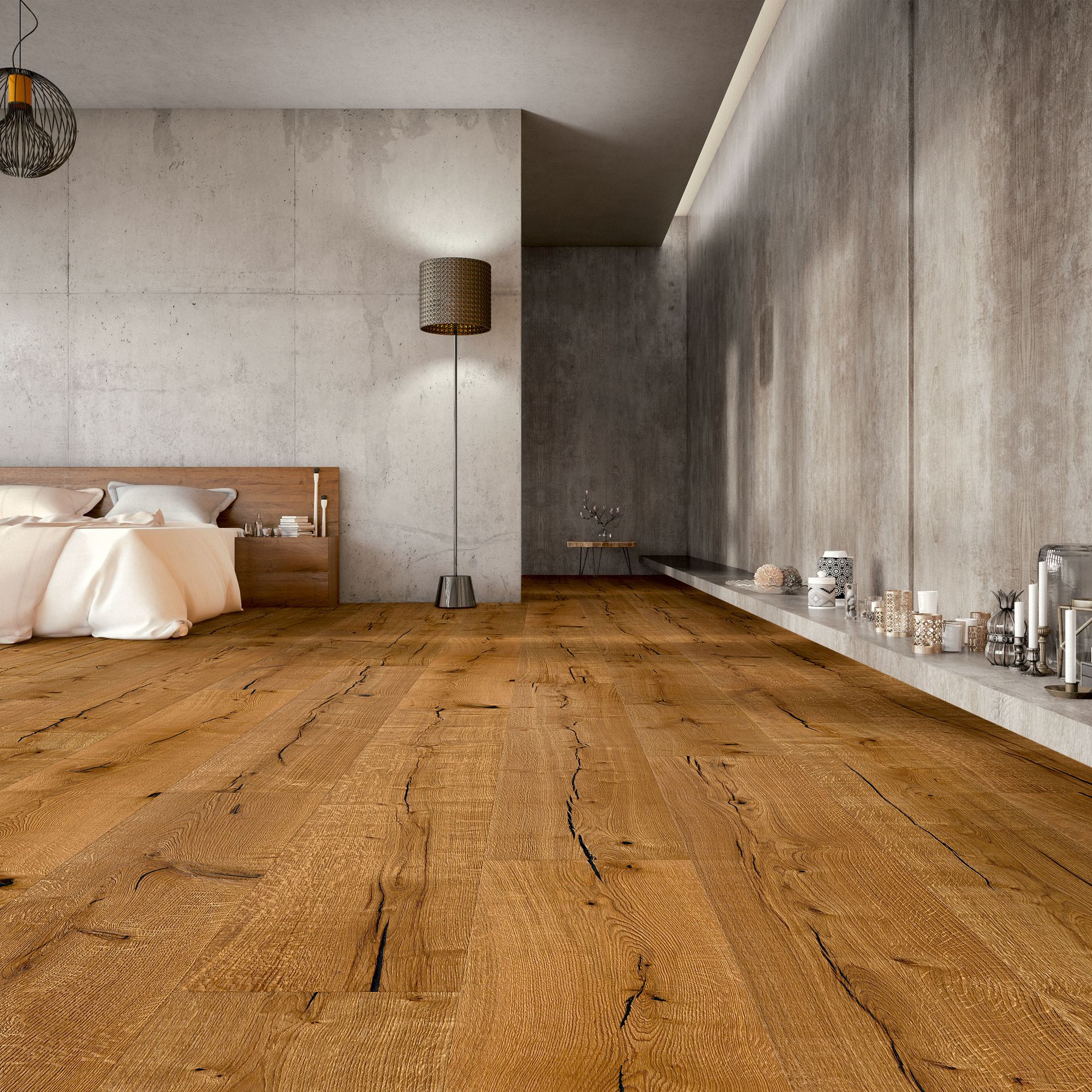 Die sehr beliebten Eichenböden sind durch die enorme Härte des Holzes besonders langlebig und halten einiges aus. Spielende Kinder, Haustiere und schmutzige Schuhe – alles kein Problem für diese Dauerbrenner-Böden! Einfach feucht wischen oder kehren – und der Boden glänzt in unverminderter Schönheit! Der Vorteil der Reliefoptik von gehobelten oder gealterten Dielen ist die Strapazierfähigkeit, da sich Kratzer oder sonstige kleine Gebrauchsspuren in die bestehende Gestaltung integrieren – und diese Böden auch nach vielen Jahren noch wie neu erscheinen.